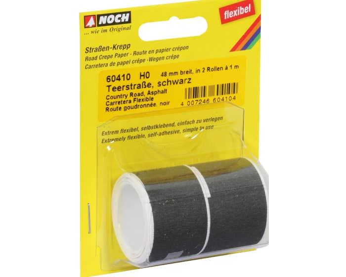 All roads lead to NOCH - because with NOCH Roads, Paths and Squares, you can very easily create a true-to-original road network. The benefits of the material are convincing: NOCH Road Crepe Paper is self-adhesive, exceptionally elastic, tear-resistant - and above all, very easy to work with. Bends, in particular, can be reproduced easily and effectively with NOCH Road Crepe Paper. In addition, NOCH Road Crepe Paper is ideally suited to the FALLER Car System.