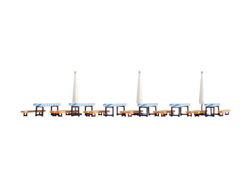 Contents: 12 Beer Benches, 6 Beer Tables and 3 Parasols