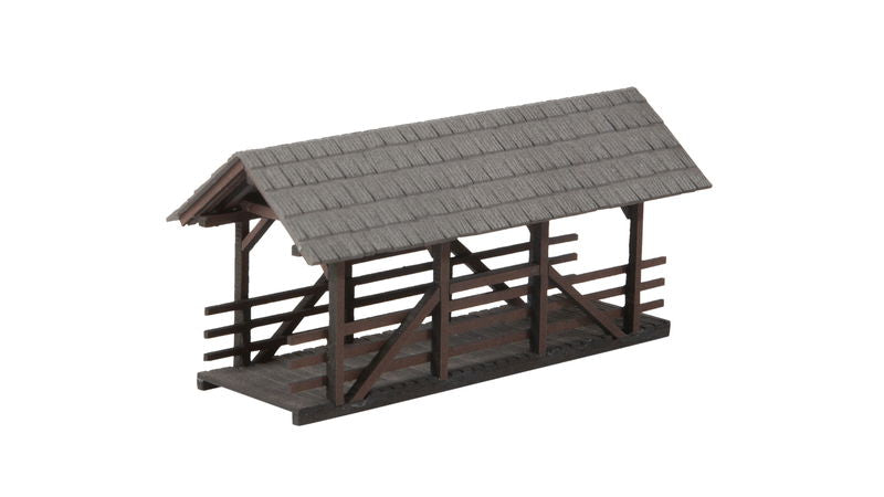 The "covered pedestrian bridge" in H0 gauge (1:87 scale) allows pedestrians to cross safely to the other bank. Whether it's a small stream or a river, pedestrian bridges allow you to reach the other side of the river in no time.