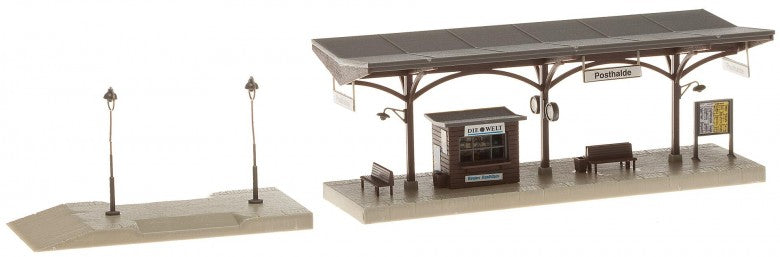Covered platform with accessories. Platform extension with track lowering. For all track types. Illumination with strip light bar (art. 180654).
