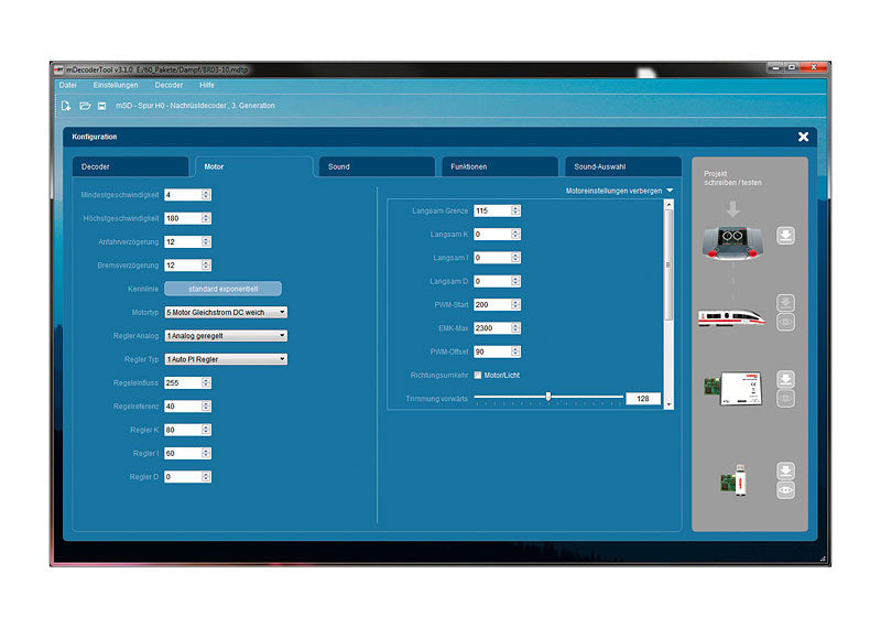 - Fast programming of the new Märklin mLD3 and mSD3 decoders.
