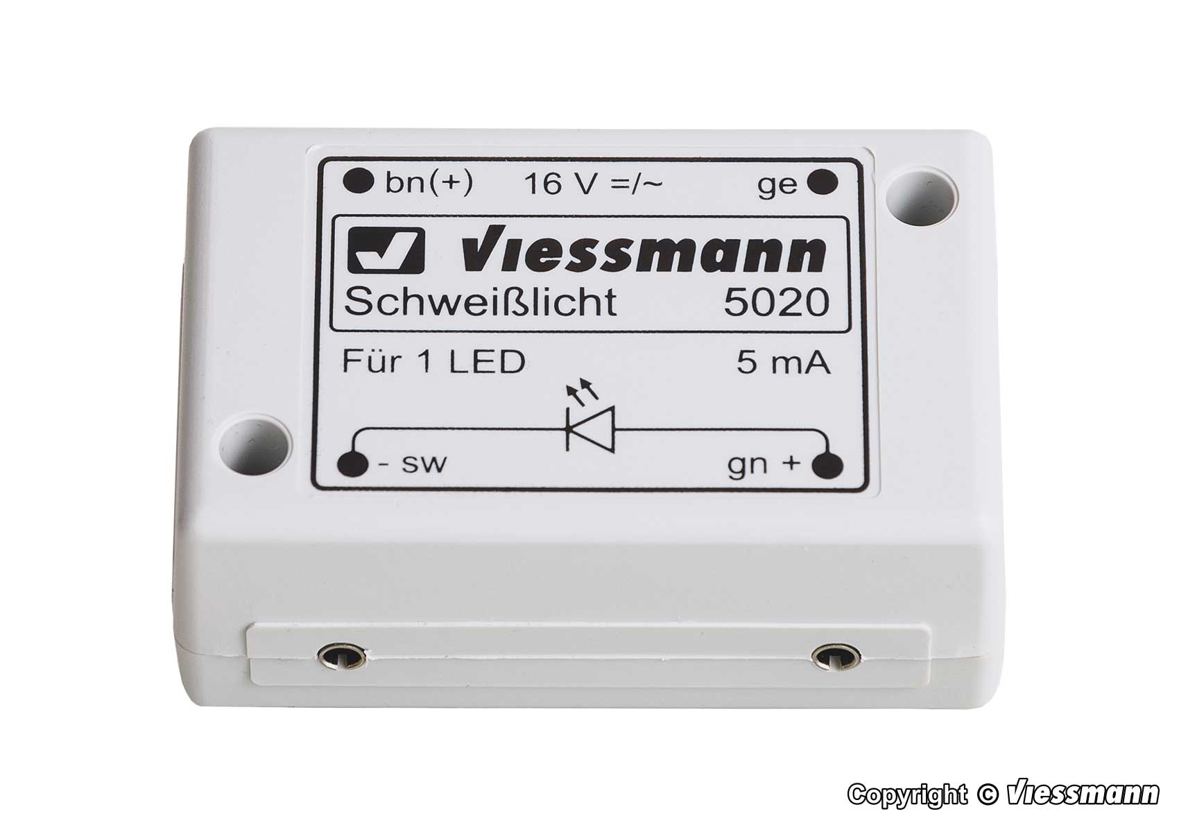 With this module the attached blue LED will flicker, so that it seems to be a real welding light. Realistic effect by integrated interval switch which interrupts the flickering automatically with breaks. Suitable for all kind of scales. Ideal to insert into depots, workshops, e. g. factory buildings. Maintenance free by LED lighting.