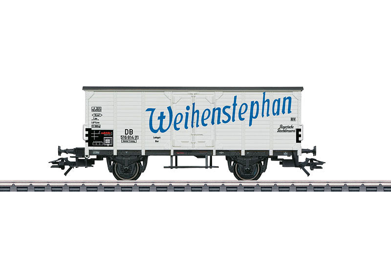 Prototype: Two-axle boxcar as a beer refrigerator car with the brakeman's stand removed. Privately owned car painted and lettered for the Bavarian State Brewery Weihenstephan, Freising, Germany, used on the German Federal Railroad (DB). The car looks as it did around 1961.