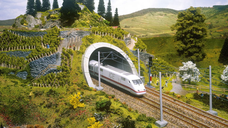 If you want to add variety to your railway layout in a very simple way, tunnels are the best solution. It's not just children who are fascinated by seeing the train disappear into the tunnel on one side and reappear on the other! The "ICE tunnel portal" from NOCH is perfect for adding even more realistic details to any model landscape scene. The train makes its way through the beautiful landscape. An "ICE tunnel portal" is ideal for safely crossing rocks, mountains, slopes, and other natural features. Design your own individual model railway landscape and set it off perfectly with details such as the "corner tunnel".