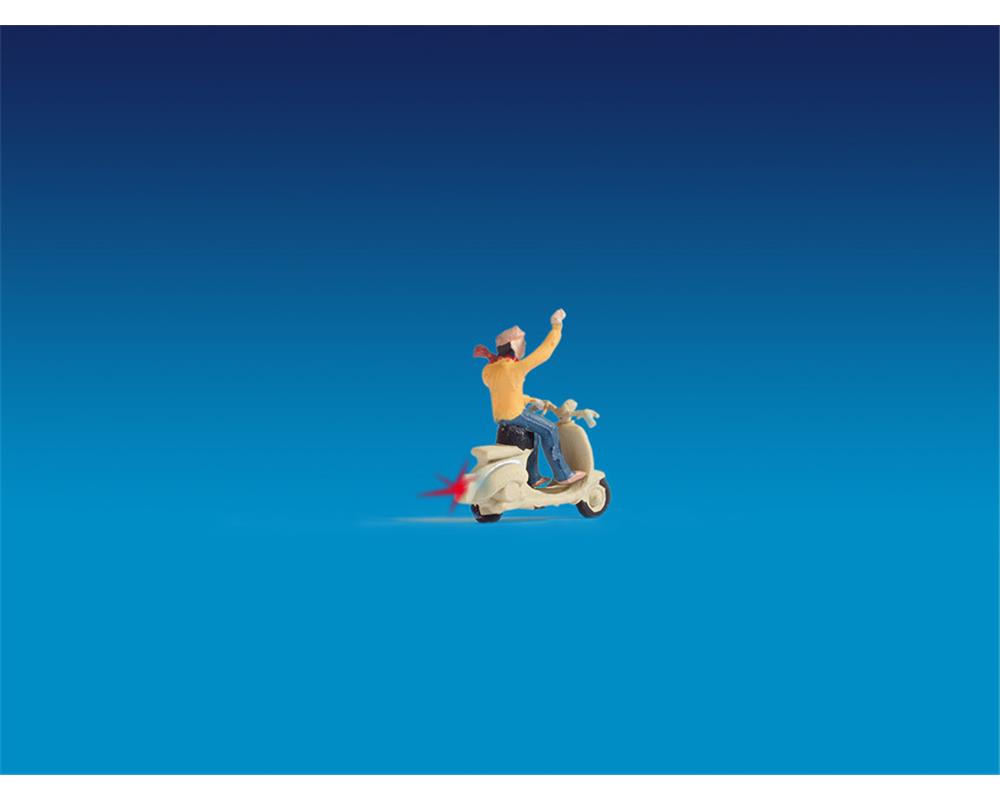 Let there be light! With the development of the "micro LED" it became possible to equip model vehicles with headlights, indicators etc. over the last few years. However, equipping these models with mini lights required a great amount of skill and was only recommended for the experienced modelmaker. In order to introduce the concept of illuminated figures and motorbikes on your model landscape, NOCH presents a number of models already pre-fitted with such technology this year. The figures are assembled with high-quality LEDs in the NOCH factory in Vietnam and then painted by hand, thus ensuring that no wires are visible. This guarantees a high-quality appearance ready for professional use. All models are ready-to-use, assembled and wired. The connection can be made with the usual 16 V AC / DC model transformer.