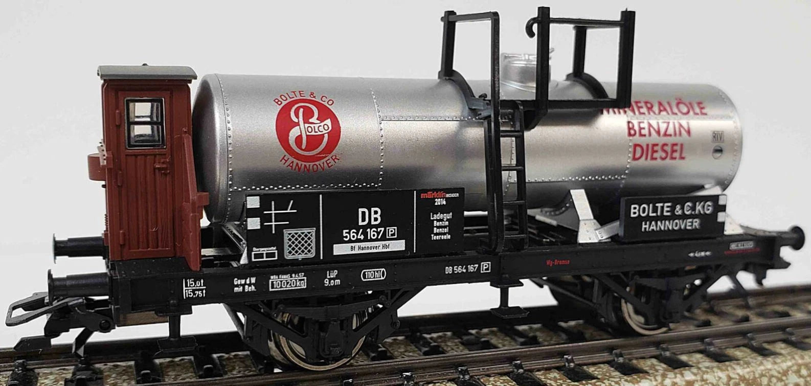 Prototype: Two-axle, old-timer Bavarian design tank car, with a brakeman's cab. Privately owned car painted and lettered for the firm Bolte & Co. KG, Hannover, Germany, used on the German Federal Railroad (DB). The car looks as it did about the end of the Fifties.