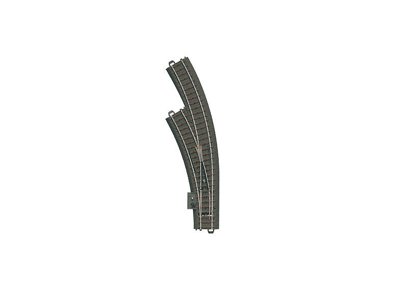 Inner curve: R1 = 360 mm / 14-3/16" / 30°. Outer curve: 30° with the parallel curve spacing of 77.5 mm / 3-1/16". Can be retrofitted with the 74492 electric turnout mechanism.