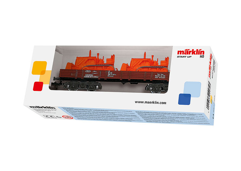 Model:The car comes loaded with two bulldozers. Relex couplers. Length over the buffers 16 cm / 6-5/16".