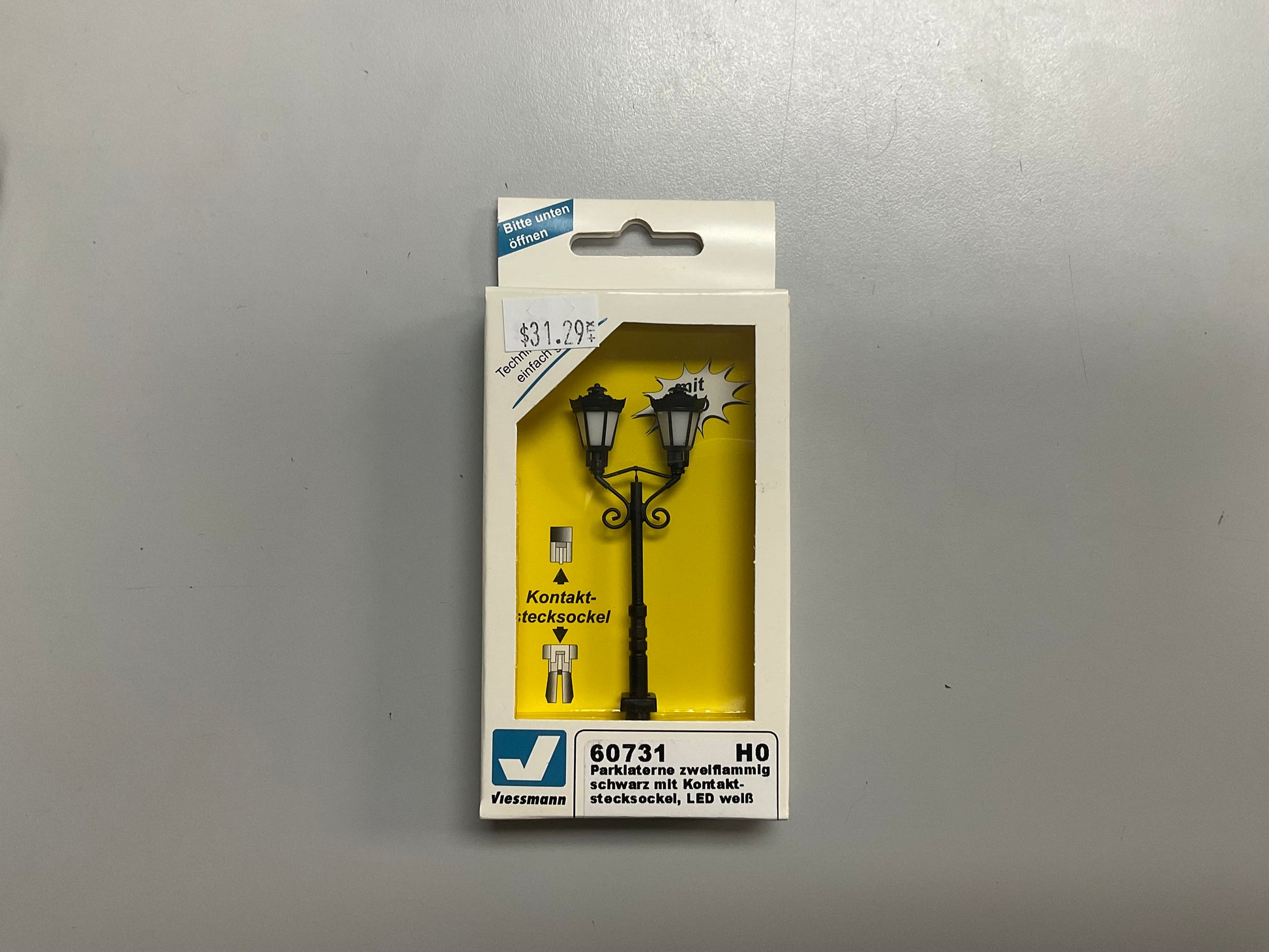Park Lamp, Double, Black, with Plug-in Socket, 2 LEDs Warm-White