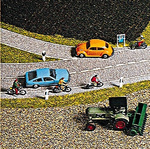 Noch Flexible Roadways are made of a special crepe paper that can be curved to fit your scenes. Each package of self-adhesive roadway contains two 39-3/8 1mm rolls, each representing approximately one lane width of driving surface.