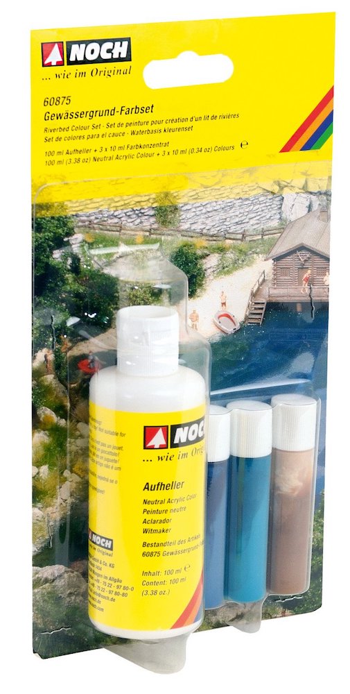 With the Rivered Colour Set, you can create any kind of realistic beds of waters. From clear mountain streams to turquoise Alpine reservoirs, from brown-black moor ponds to blue-green swimming lakes: depending on the mixing ratio of the colours in the water, you will get a very unique ground colour.
