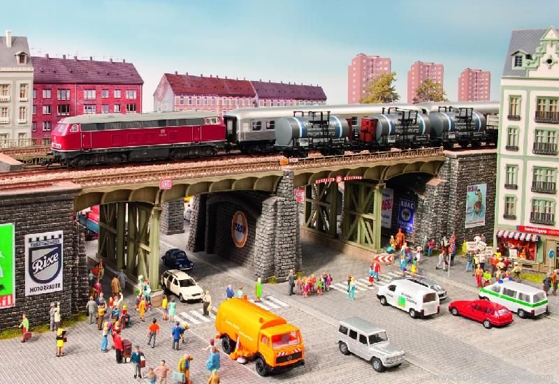 The innovative NOCH Town Bridge System is available in a single or double track version. Every kit includes a long and a short bridge track, the required laser-cut girder structures including concrete base and two high-quality bridgeheads made of NOCH structured hard foam. For larger bridge constructions, the additionally required girder structures are also offered individually in the single and double track version. Colours, combinations and forms are subject to change without prior notice.