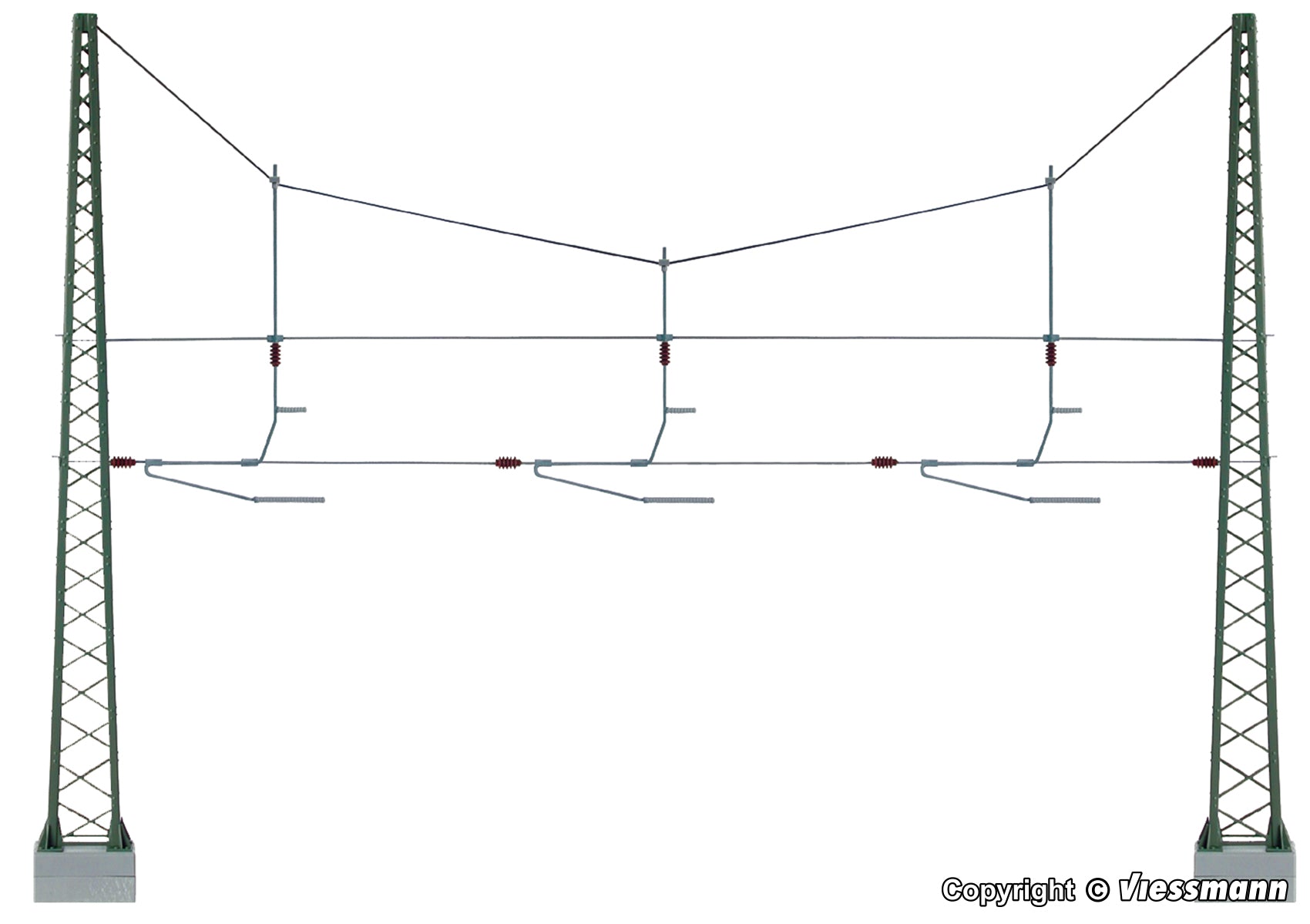 Ready-to-install and varnished. The track distances are variably adjustable. The 3 tracks are electrically insulated. Filigree metal work with stamped rivet imitations.