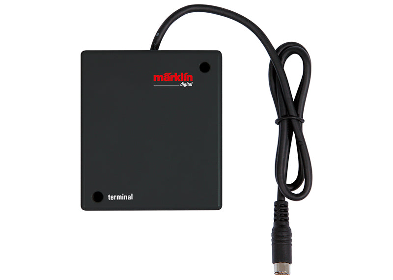Connections can be made for additional devices from the digital program to the Central Station. The unit has a permanent 9-conductor connecting cable, 60 cm / 23-5/8" long (can be extended with 60126) and a 9-pin socket for another Terminal or for other devices to the main line. Four (4) 7-pin sockets for connections from the Mobile Station (60124 adapter cable necessary) or other peripheral devices. Dimensions 96 x 85 x 40 mm / 3-3/4" x 3-3/8" x 1-9/16".