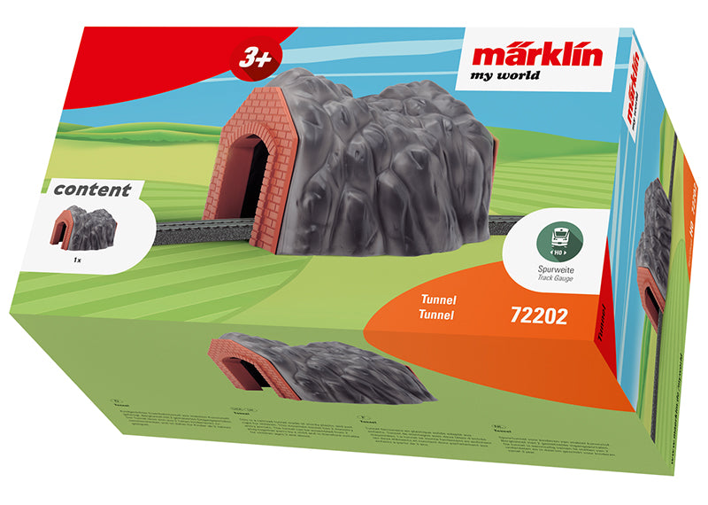 This is a railroad tunnel made of sturdy plastic and just right for children. This mountain tunnel has 2 masonry entry portals. The tunnel can be assembled from 2 plug-together parts by a child and is therefore suitable for children ages 3 and above.