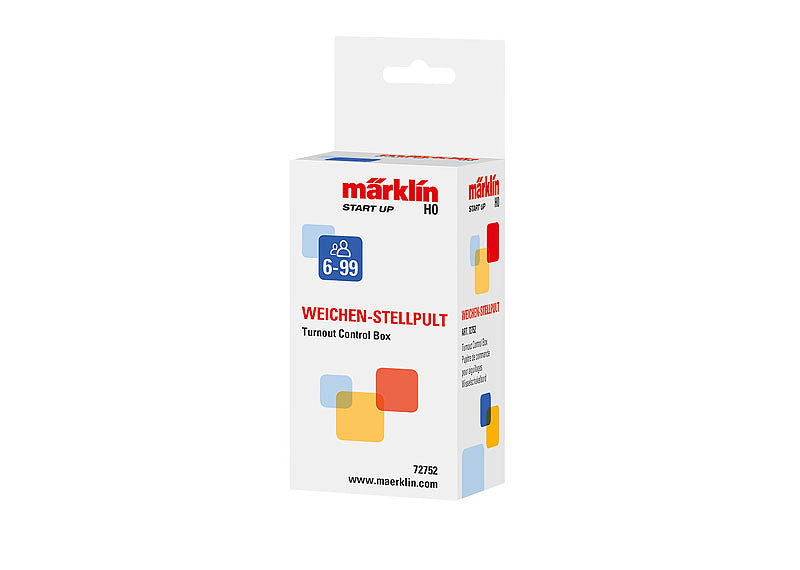 This control box is for operating 4 turnouts. It has an automatic feedback of the accessory setting by means of LEDs when used with the 74492 turnout mechanism. 4-conductor wire with plugs included for connecting several controllers.