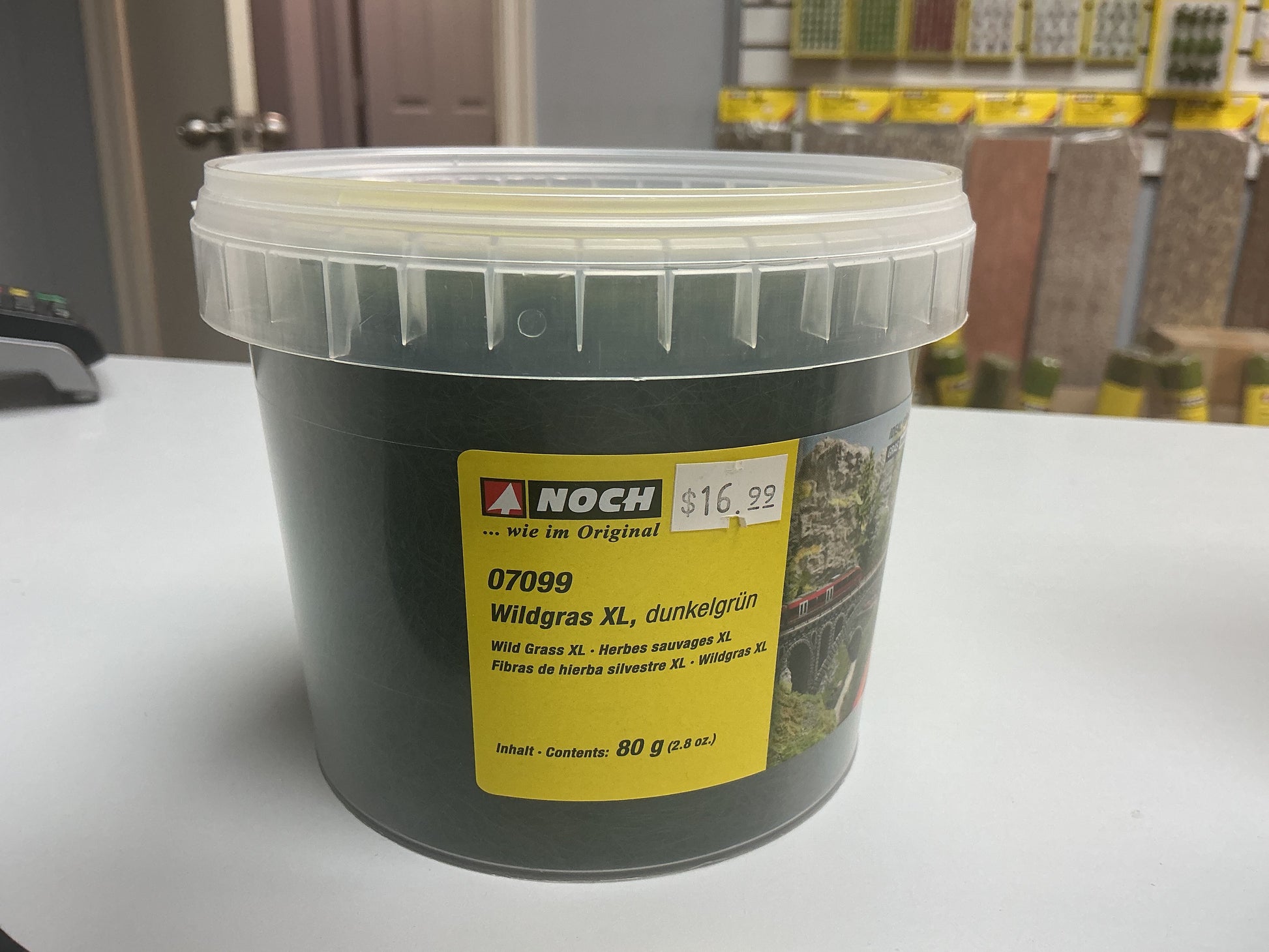 The realistic NOCH Wild Grass XL is ideal to create high blades of grass and model meadows. The material can easily be taken out of the practical container and after use the remaining material can be filled into the container again. The containers are stackable. Thanks to the transparent visible areas on the container you can easily check how much material is still left.